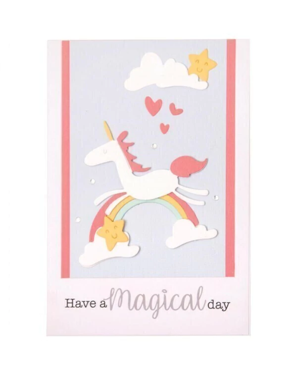 Da vida a los sueños de una princesa con el juego de dados Fantasy. Con un fabuloso hada, un unicornio increíble, un arco iris radiante y un conjunto de detalles mágicos. Este conjunto encantador es el complemento perfecto para las marcas de papercraft, incluida la fabricación de tarjetas, la decoración del hogar y el álbum de recortes.
