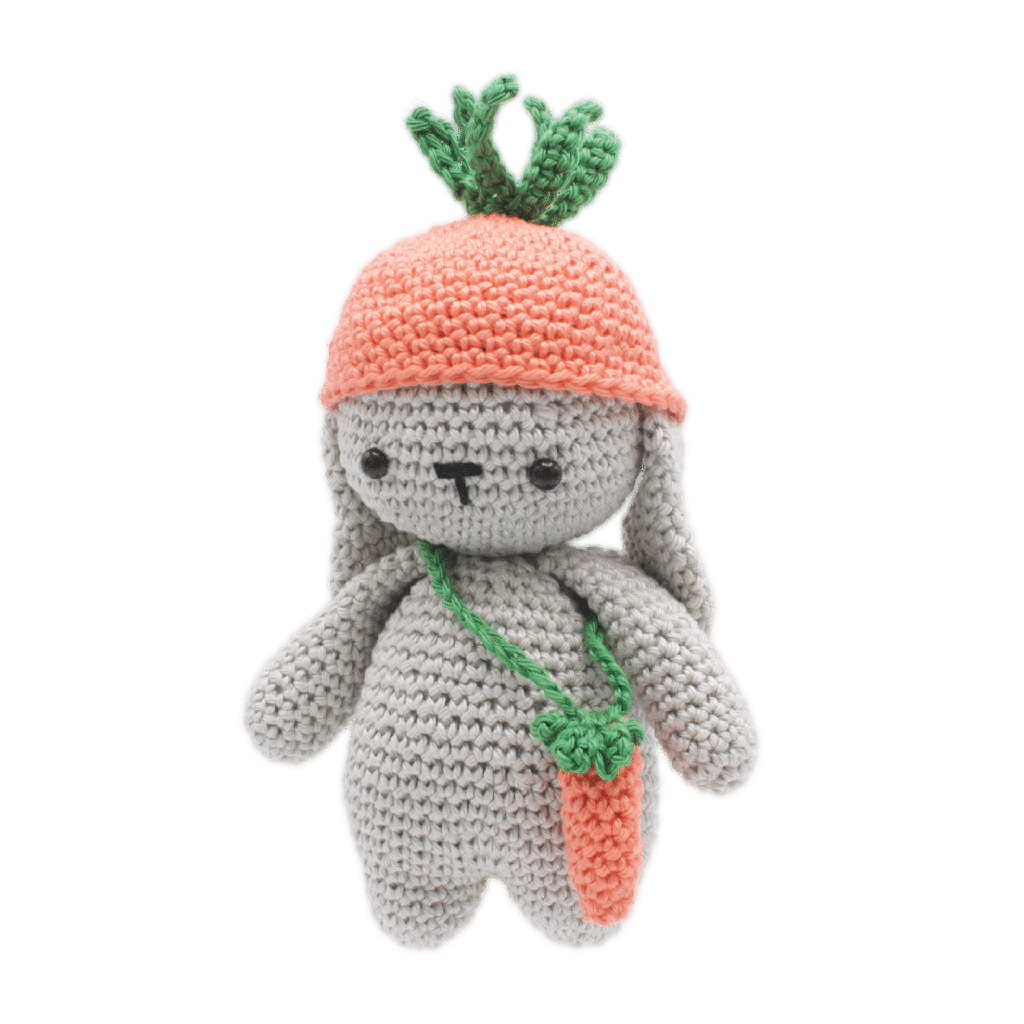 ¡Conoce a Frank! Su atuendo está inspirado en su comida favorita: ¡las zanahorias! Este kit incluye un patrón, hilo 100% algodón de calidad y todos los materiales necesarios para empezar (excepto la aguja de crochet). Frank mide aproximadamente 16 cm y está hecho con una aguja de crochet de 2,5 mm.
